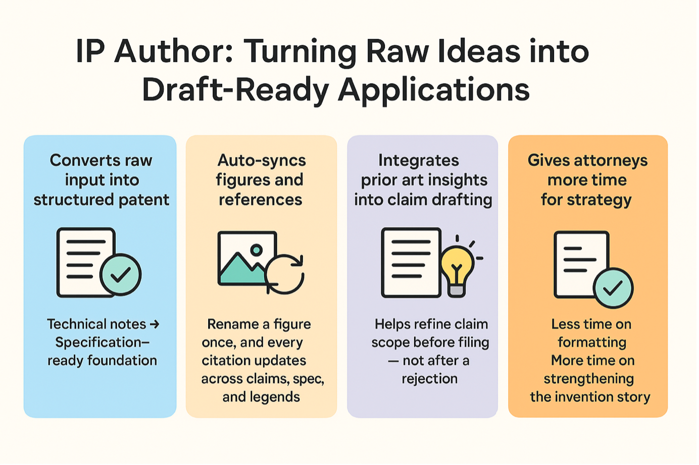 Modern drafting tools like IP Author can transform raw disclosures into well-structured drafts that clearly reflect what the invention is and what it is not. This shift is reshaping how top firms draft claims, respond to examiners, and bring applications to filing speed.